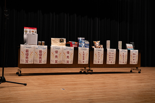 応募してもらった260作品の中から、エコアイデア・エコ発明部門、おもしろエピソート部門の合計14作品が入賞作品、18作品が入選作品として選ばれました。