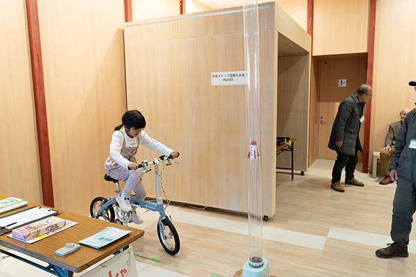 自転車をこいで発電しよう自分の力で自転車をこいで発電して、ロケットを発射させよう!電気やエネルギーの上手な使い方を考えます。【奈良ストップ温暖化の会(NASO)】 |