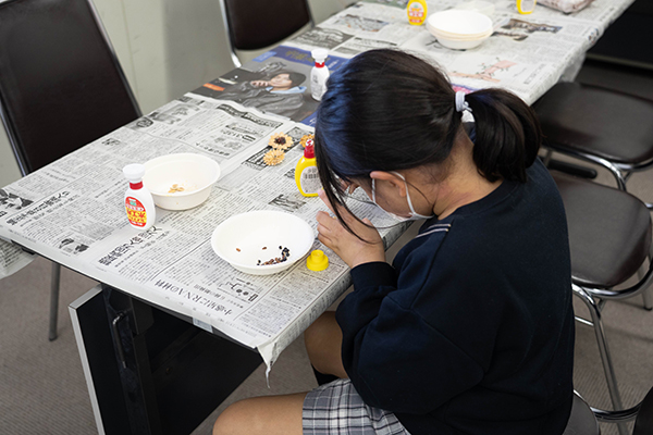 菌の力を借りて食べ残しをリサイクルする仕組みを学ぶ講座を、講師・アサヒバイオサイクル(株)さん、運営協力・NTT西日本(株)さんに開催してもらいました。顕微鏡を使って、微生物の働きを観察。見学に来ていた保護者の方も一緒に体験をしました。