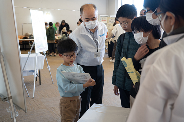 今年度も、奈良教育大学で学校教員を目指す学生たちが運営に協力してくれました。おしごと体験では、事前打ち合わせにも対応してもらい、進行をお任せしました。今回、ブース出展はありませんでしたが、総合受付や、スタンプラリーの景品対応、紙ひこうき飛ばし大会の進行など様々な場面で活躍していただき、運営もスムーズに進めることができました。