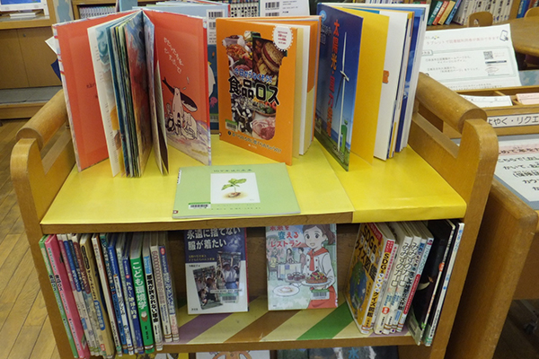 奈良市中央図書館との連携企画として12月6日(金)から12月20日(金)までエコに関する本を特集展示していただきました。あつまれECOキッズ当日は、エコに関するクイズを図書館前に設置しスタンプラリー参加者にチャレンジしてもらいました。
