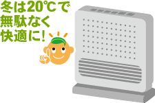 冬の室内温度は高めになりがちです。快適な省エネ温度の目安は20℃。(22℃から20℃にした場合)