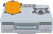 炎は鍋からはみ出さないように使うのが効率的です。全開→中火の場合。