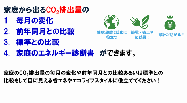結果をもとに日ごろの生活を見直す→家計が助かる・省CO2につながる