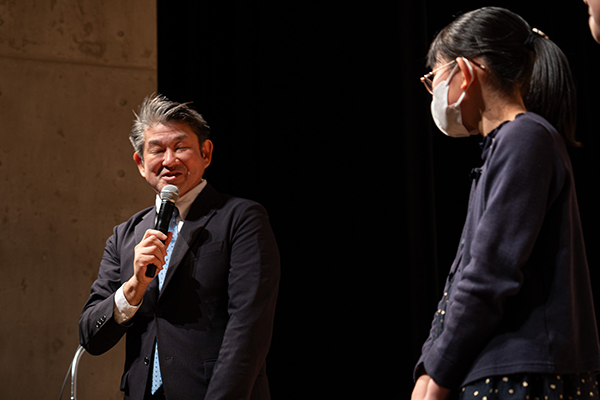賞状授与の後は最優秀賞・優秀賞・企業賞の皆さんから、それぞれのアイデアやエピソードについて発表していただきました。なぜ、このアイデアを思いついたのか、そしてどのような形で環境を良くしていきたいと思っているのかわかりやすく、はっきりと話をしてくれました。猛暑や災害など、実際の体験から生まれたより身近なアイデアやエピソードが増えていると感じました。10年経過して、参加する子どもたちは毎年少しずつ入れ替わっているはずですが、発表コメントが年々充実した内容となっており、関わる児童たちの環境への意識も高まってきていることを感じます。