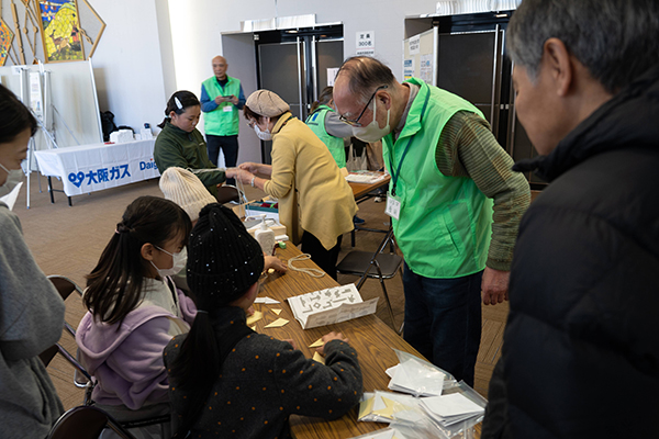 今年度も、奈良教育大学で学校教員を目指す学生たちが運営に協力してくれました。おしごと体験では、事前打ち合わせにも対応してもらい、進行をお任せしました。今回、ブース出展はありませんでしたが、総合受付や、スタンプラリーの景品対応、紙ひこうき飛ばし大会の進行など様々な場面で活躍していただき、運営もスムーズに進めることができました。