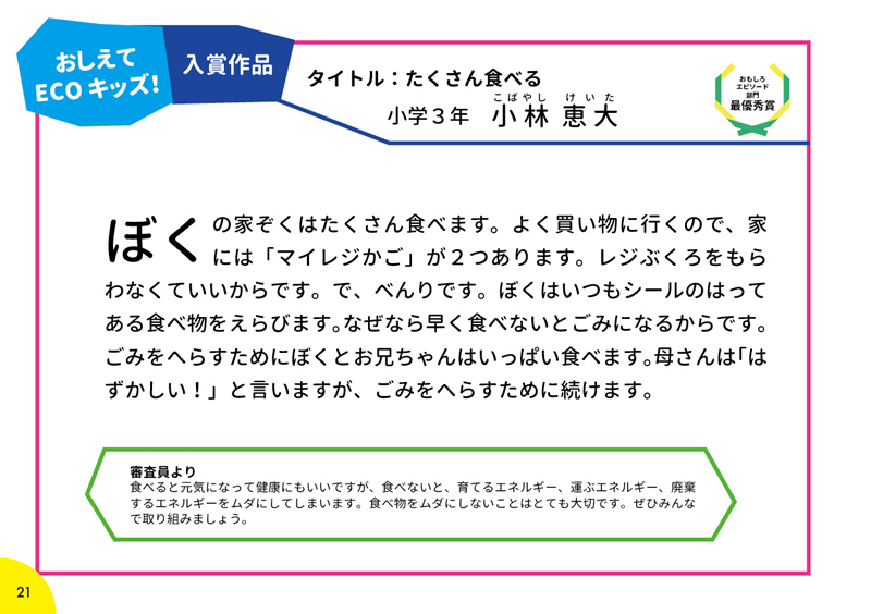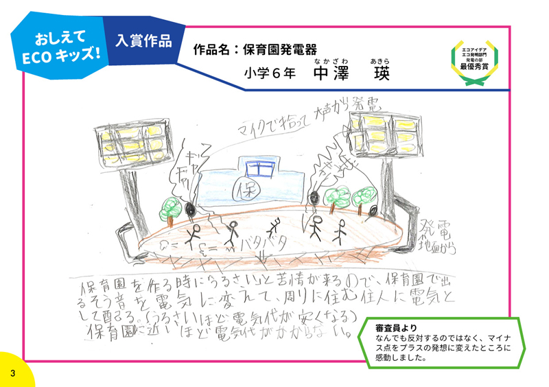 「おしえて ECO(エコ)キッズ!COOL CHOICEアイデアコンテスト」ご応募ありがとうございました!応募してもらった349作品の中から、エコアイデア・エコ発明部門、おもしろエピソート部門合わせて29作品と入選作品56作品をハンドブックへ掲載しました。ぜひご覧ください!