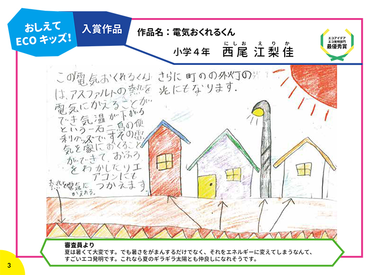 「おしえて ECO(エコ)キッズ!COOL CHOICEアイデアコンテスト」ご応募ありがとうございました!応募してもらった148作品の中から、エコアイデア・エコ発明部門、おもしろエピソート部門の合計14作品が入賞作品、33作品が入選作品として選ばれました。ぜひご覧ください!