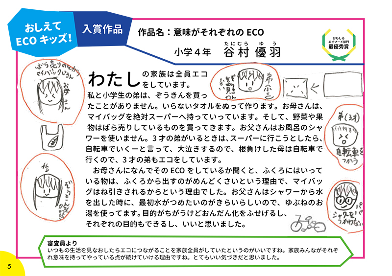 応募作品の中から、すてきなものを選んで表彰をします。また、どんなアイデアやエピソードなのかを発表します。