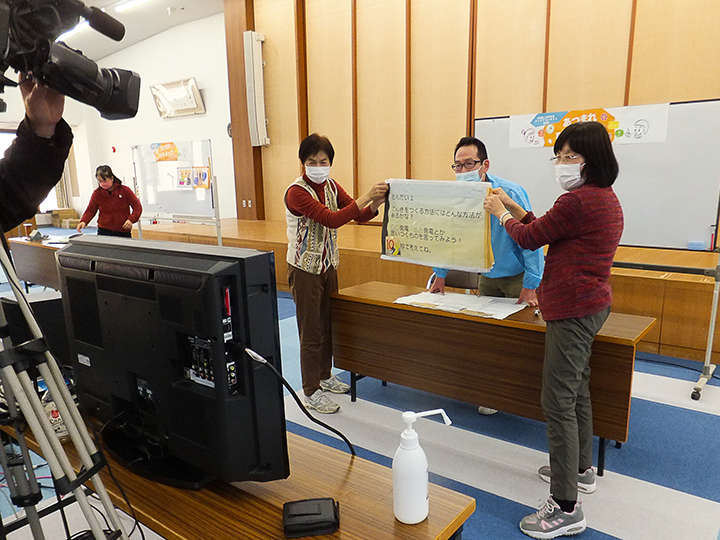 オンライン体験教室は、市役所の一番広い部屋に機材をセットし、2台のカメラで撮影・オンライン配信を行いました。参加者は各家庭からアクセスし、クラフトやクイズに参加してくれました。プログラム実施に協力いただいた8つの団体のプログラムは、会場で実施予定だったプログラムをオンライン版にアレンジいただきました。また、市役所に来るのではなく、オンラインから参加して実施する団体もあり、新しい取り組みの連続となりました。プログラムの様子は動画配信していますのでぜひご覧ください。