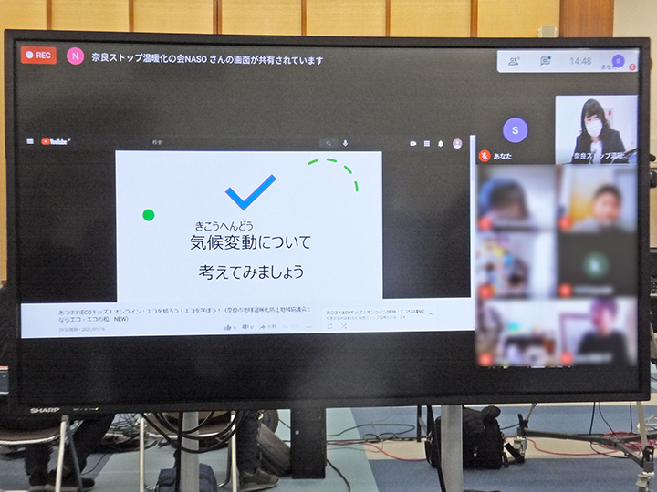今回もならまちセンターで開催を予定していた「あつまれECOキッズ!」、2020年12月8日に奈良市が「新型コロナウイルス感染警戒レベルステージ3(感染急増段階)」に引き上げられたことを受け、急きょオンラインでの開催となり、奈良市役所からの配信となりました。