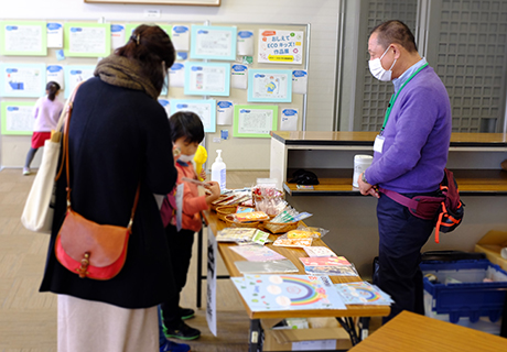 2021年12月18日(土)に、1年ぶりにならまちセンターで「あつまれECOキッズ!」を開催しました(昨年はオンライン開催)。今年は感染予防を考慮して、事前申し込みプログラムや屋外での体験プログラムを企画し、「おしえてECOキッズ!」表彰者の皆さんをはじめ約400人の来場があり、ご家族でエコな1日を過ごしてもらいました。