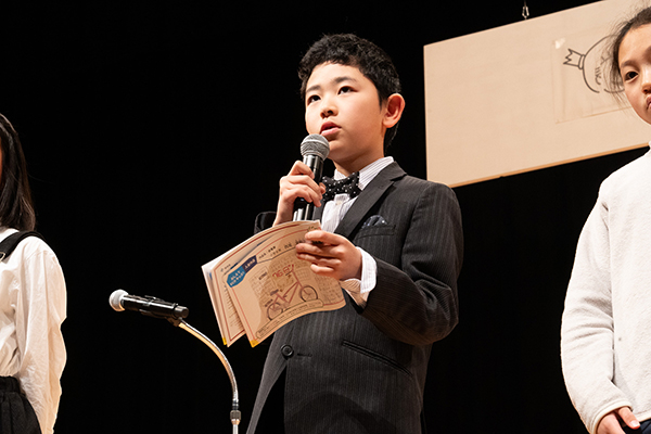 エコアイデアコンテスト「おしえてECOキッズ!」の表彰式は、市民ホールにて行いました。例年通り、参加した入賞者一人ひとりがステージに上がり、奈良市長から表彰状が授与されました。保護者をはじめたくさんの方々が見つめる中、堂々と表彰状を受け取っていました。